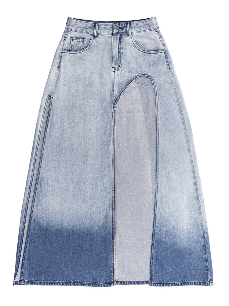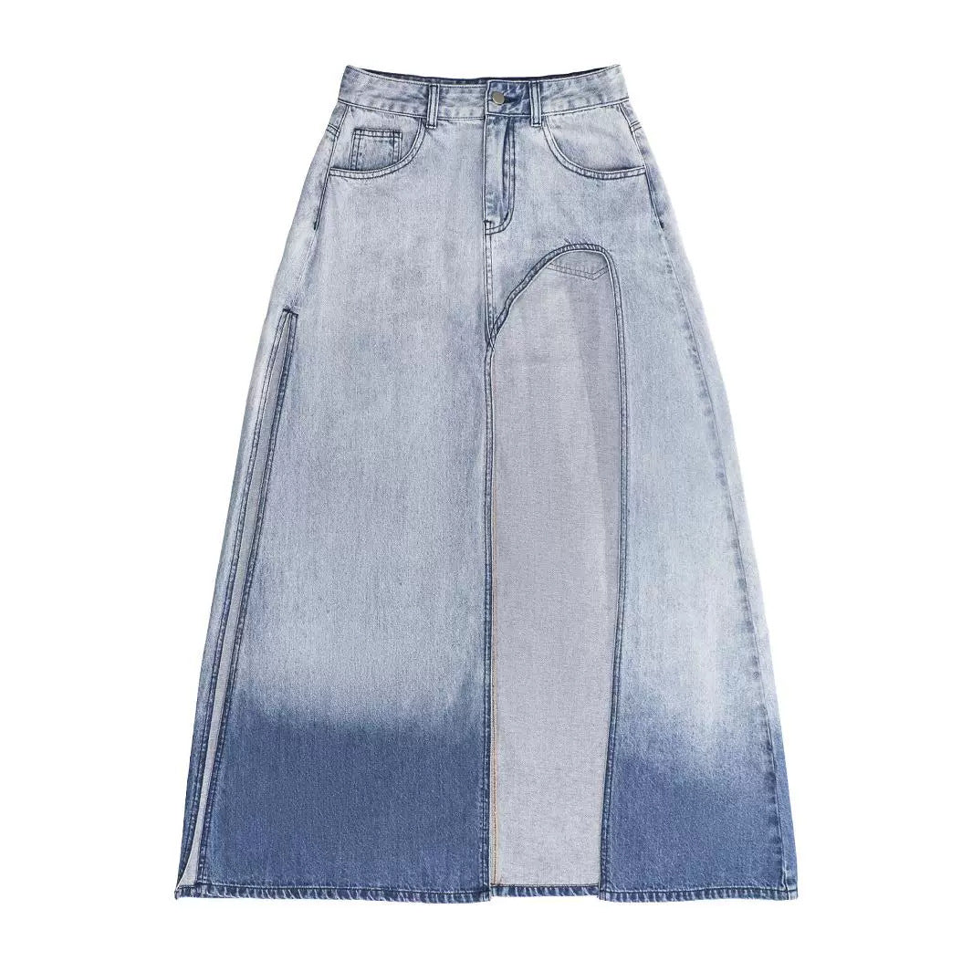 Jupe en Jean Asymétrique à Fente Effet Dégradé & Style Urbain