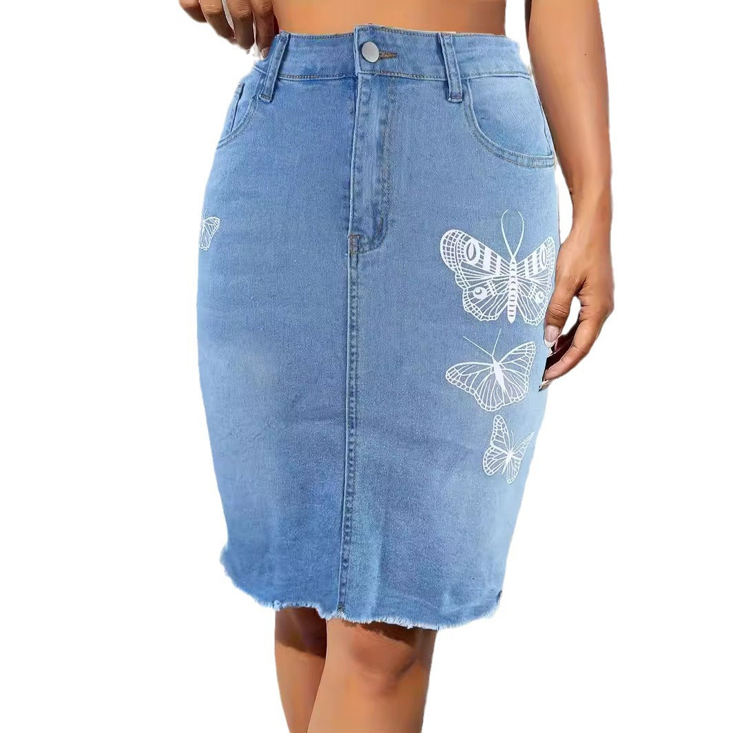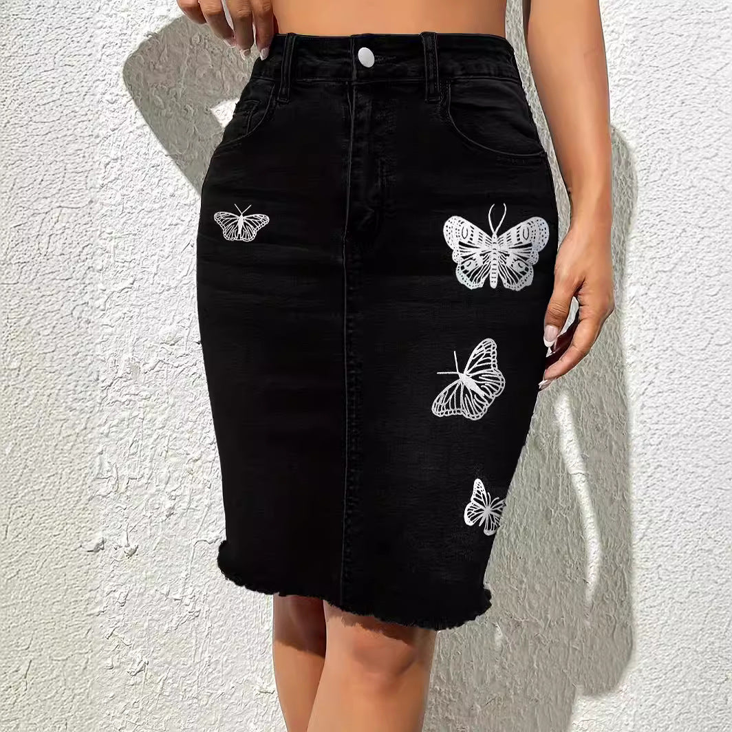 Jupe en Jean Imprimée Coupe Moulante & Style Européen & Américain