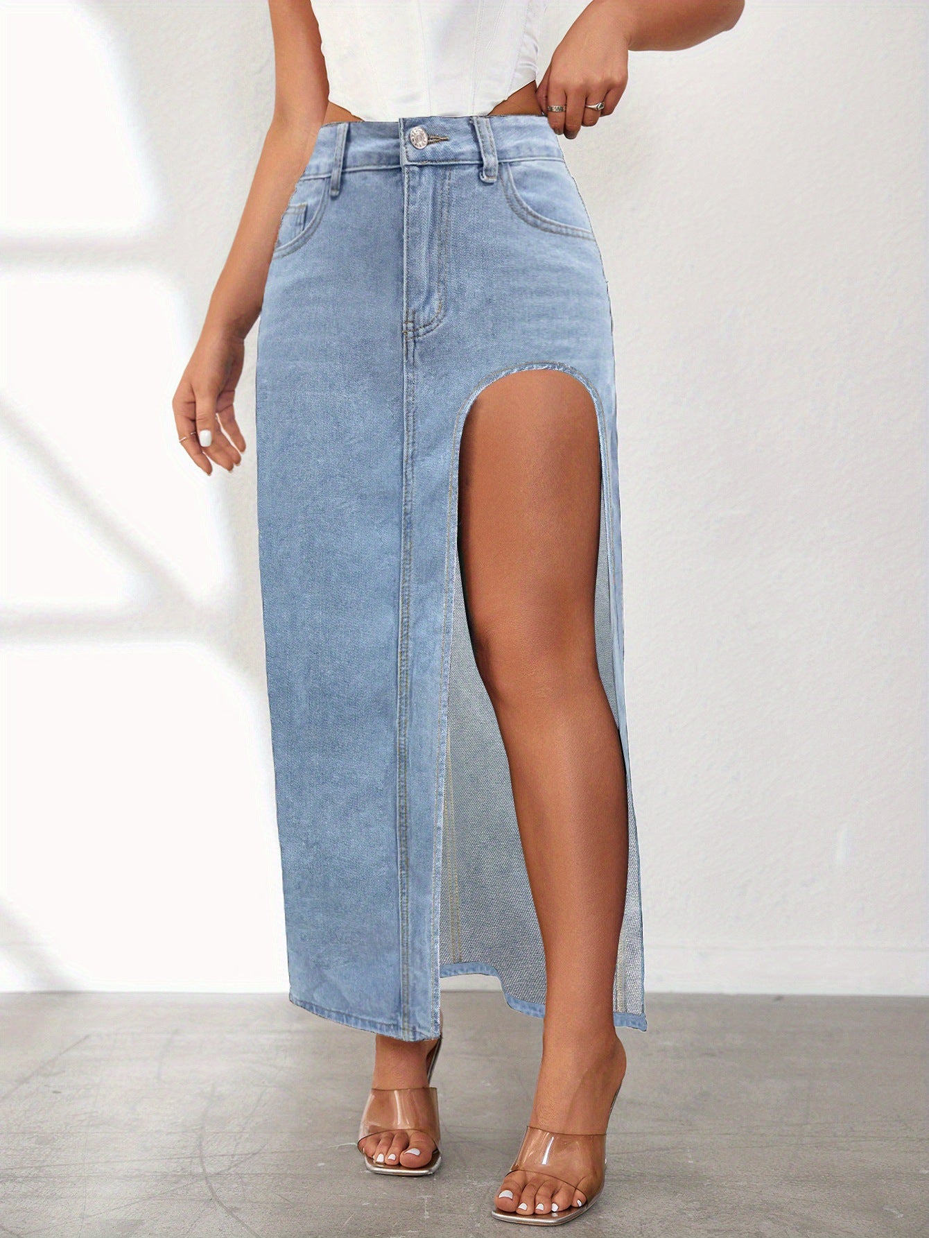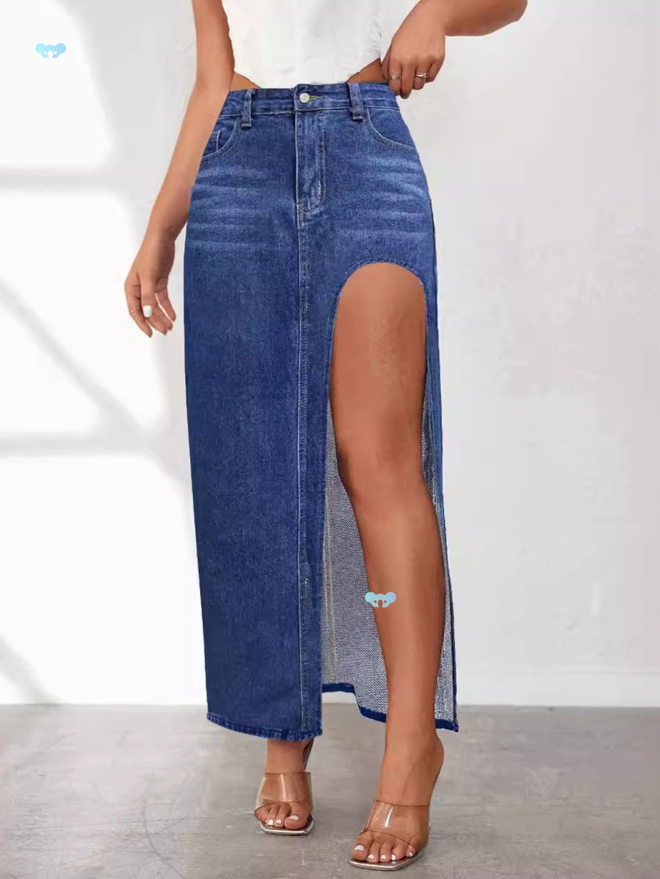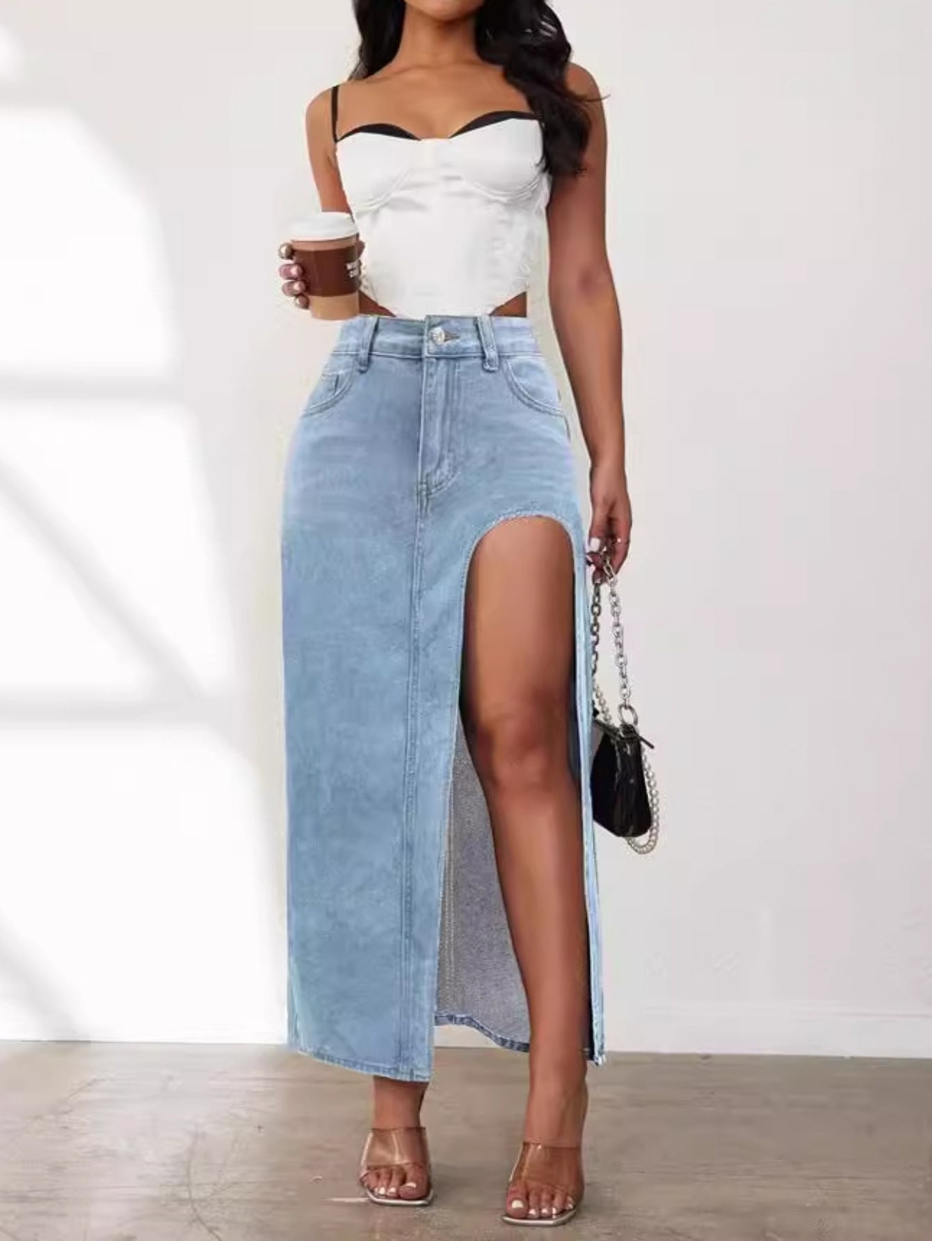 Jupe Longue en Jean à Fente Haute Denim Lavé & Style Minimaliste