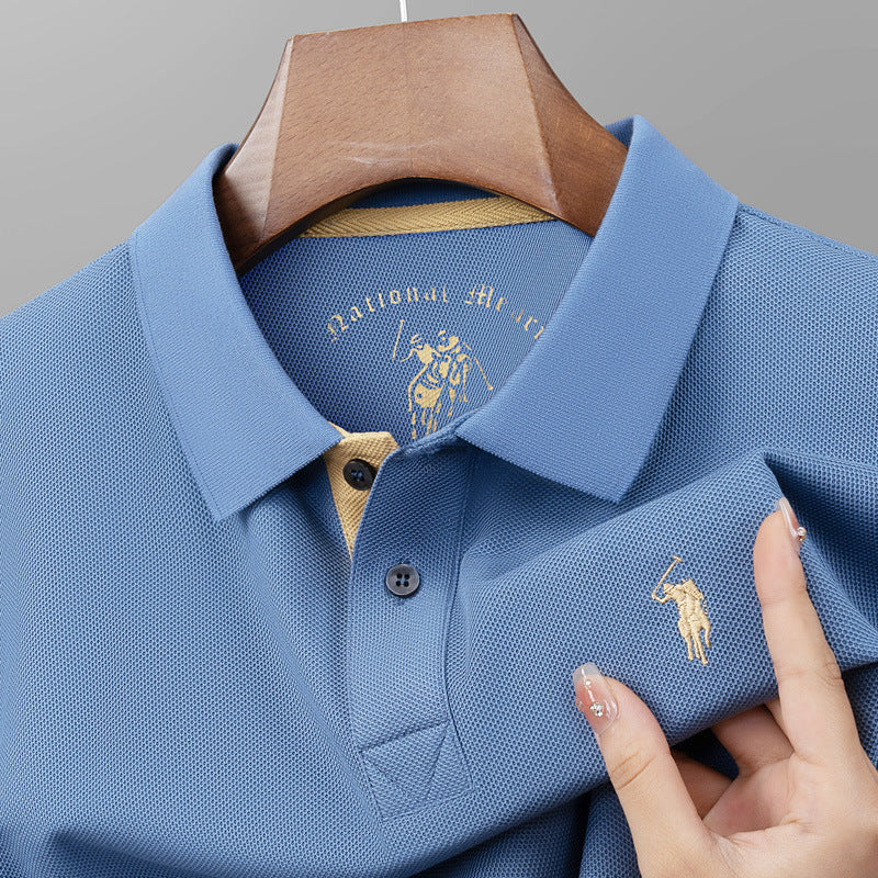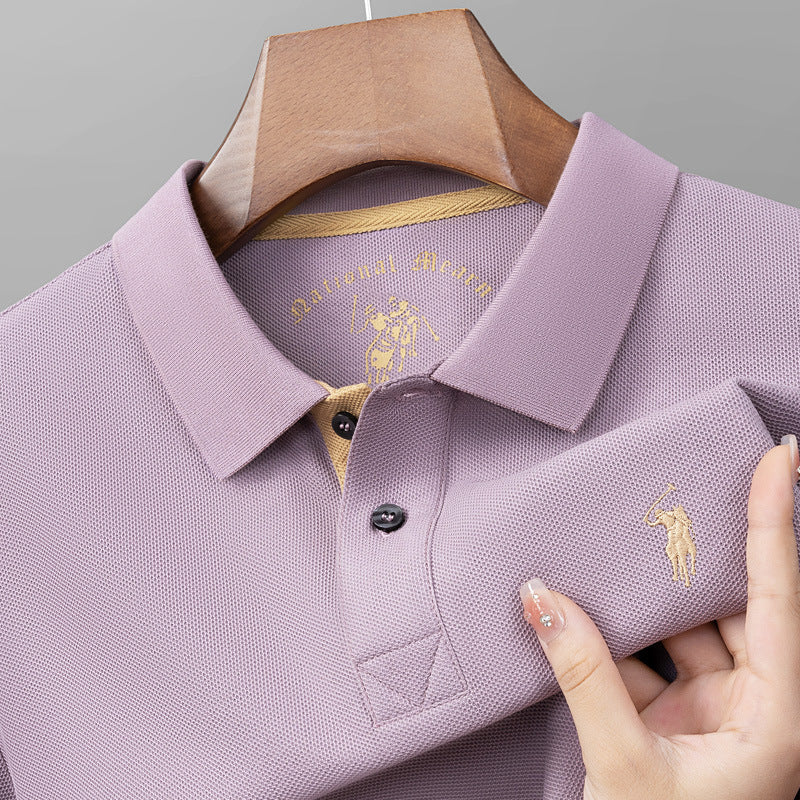 Polo homme en coton mercerisé manches courtes, col à revers, qualité premium