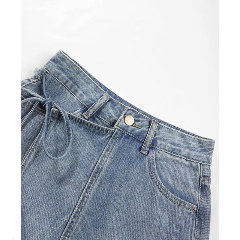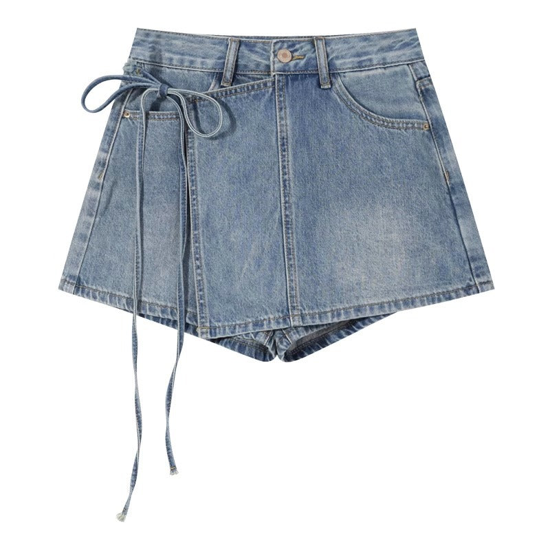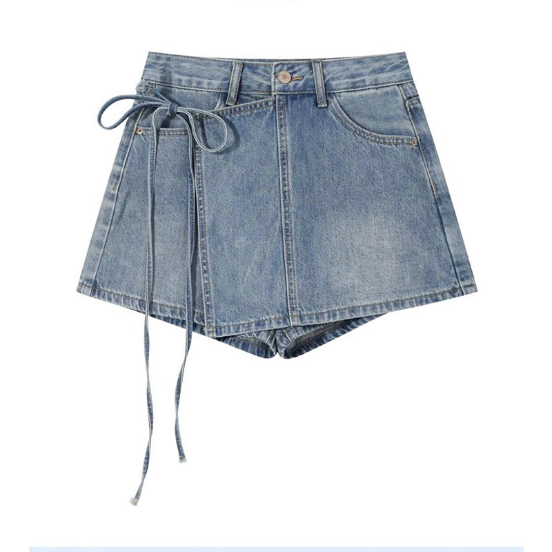 Short-Jupe en Jean d'Été Taille Haute & Coupe Trapèze Asymétrique