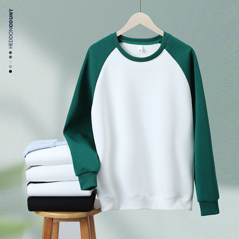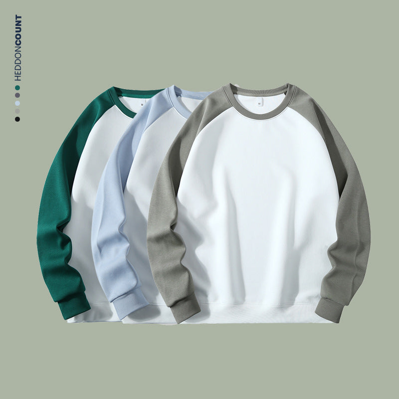 Sweat à manches longues homme en tissu épais, coupe droite, color-blocking tendance, manches raglan, col rond, confortable et unisexe.