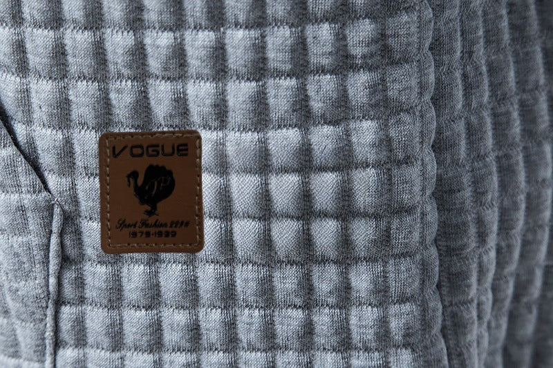 Sweat-shirt homme décontracté coupe européenne, tissu matelassé à motif carreaux, style jacquard, capuche intégrée, confortable et adapté aux looks urbains.