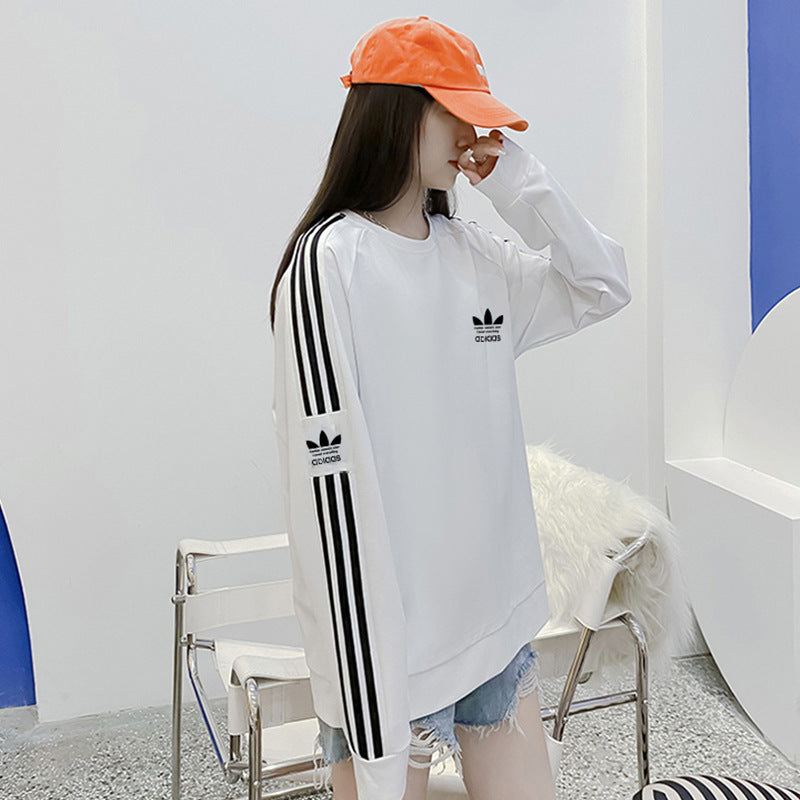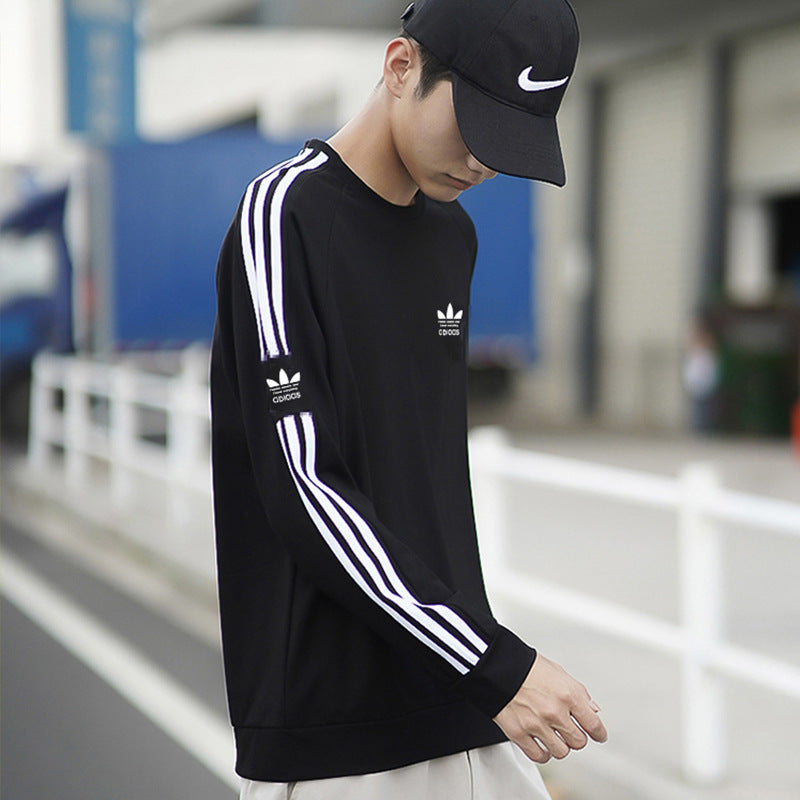 Sweatshirt Unisexe Col Rond avec Broderie Trèfle & Trois Bandes