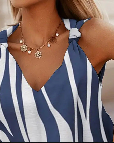 Top Décontracté à Imprimé Sans Manches & Col V Féminin