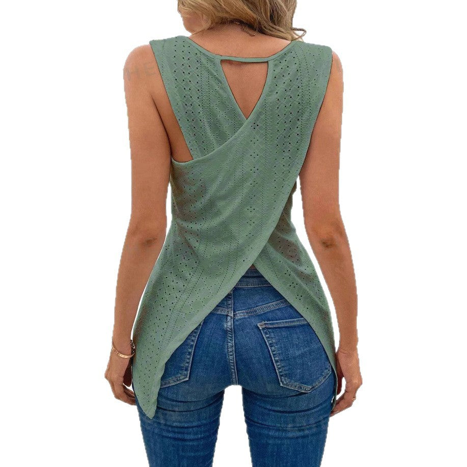 Top Sans Manches Dos Nu avec Découpes & Broderies